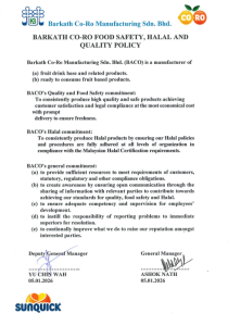 Barkath Foods Sdn. Bhd. and Hacks Malaysia Sdn. Bhd. are committed and consistent in producing products that are Halal, safe and of high quality, to satisfy the needs of consumers, by strictly adhering to the Halal requirements issued by the Department of Islamic Development Malaysia (JAKIM).
