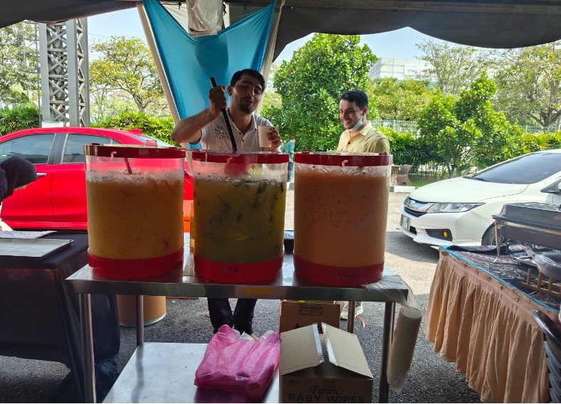 Guests were treated to a delightful spread of traditional Raya dishes, including rice, ketupat, and assorted desserts, complemented by a variety of additional food booths featuring: